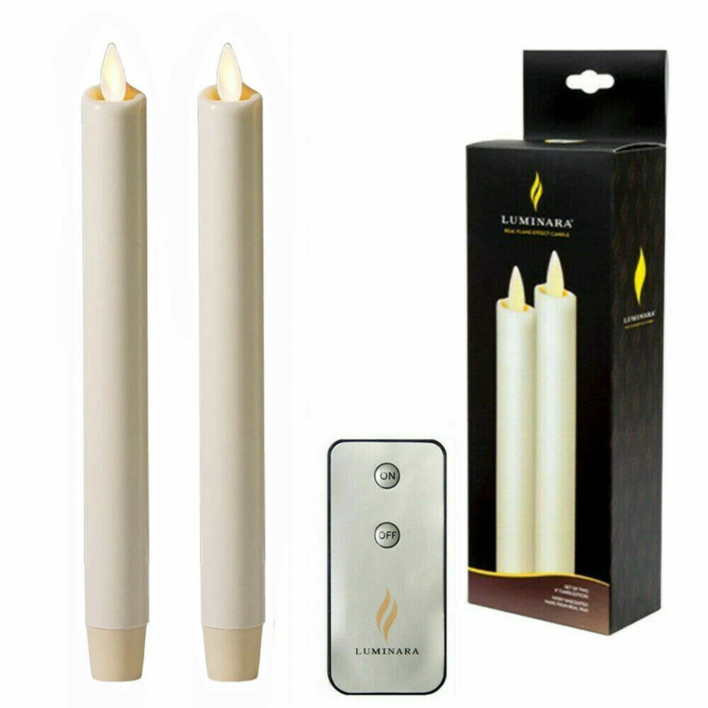 Luminara LED Flameless Wax Taper Candle Set of 2 with Remote Dancing Wick Ivory